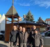 01. Dezember 2023 Die Adventskirche auf dem Greifswalder Weihnachtsmarkt steht – durch tatkräftige Unterstützung der ZSC Haustechnik