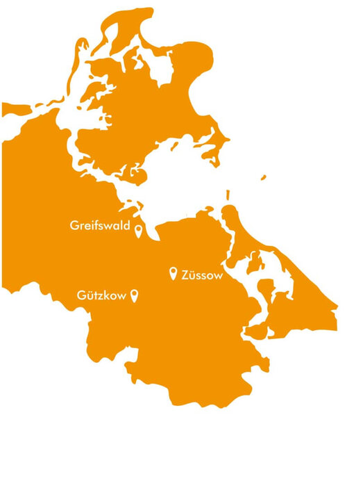 Die Züssower Service und Catering gGmbH ist an drei Standorten im Landkreis-Vorpommern Greifswald vertreten: Züssow, Greifswald und Gützkow. Unsere Dienstleistungen in den Bereichen Haustechnik, Reinigung und Bau erbringen wir dezentral.